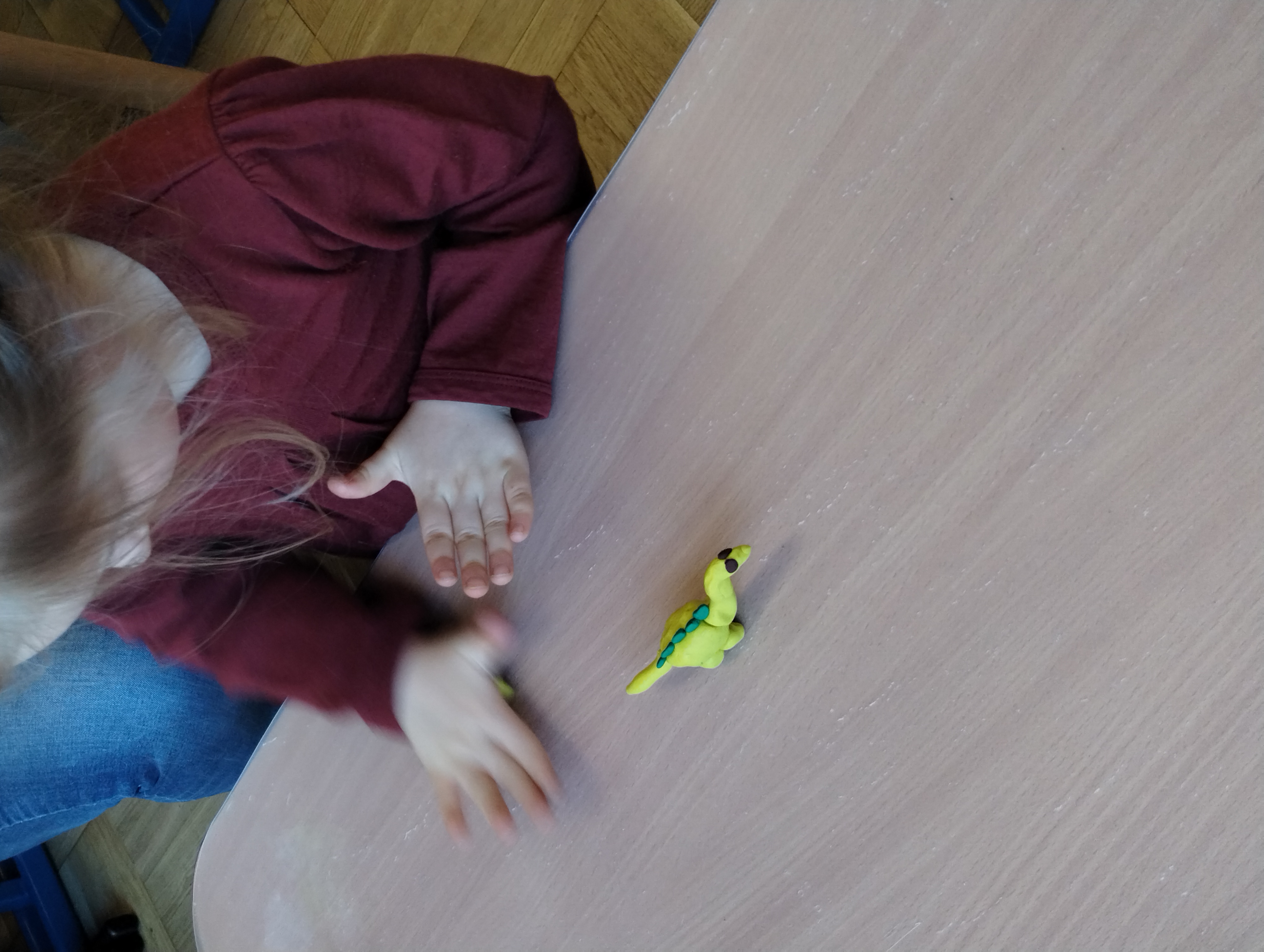 Świetliki świętowały Dzień Dinozaura. Poznały historię fascynujących gadów, tańczyły do zabaw muzycznych i nauczyły się piosenki o dinozaurach. na koniec doskonaliły motorykę małą lepiąc z plasteliny dinozaura według wskazówek nauczyciela.