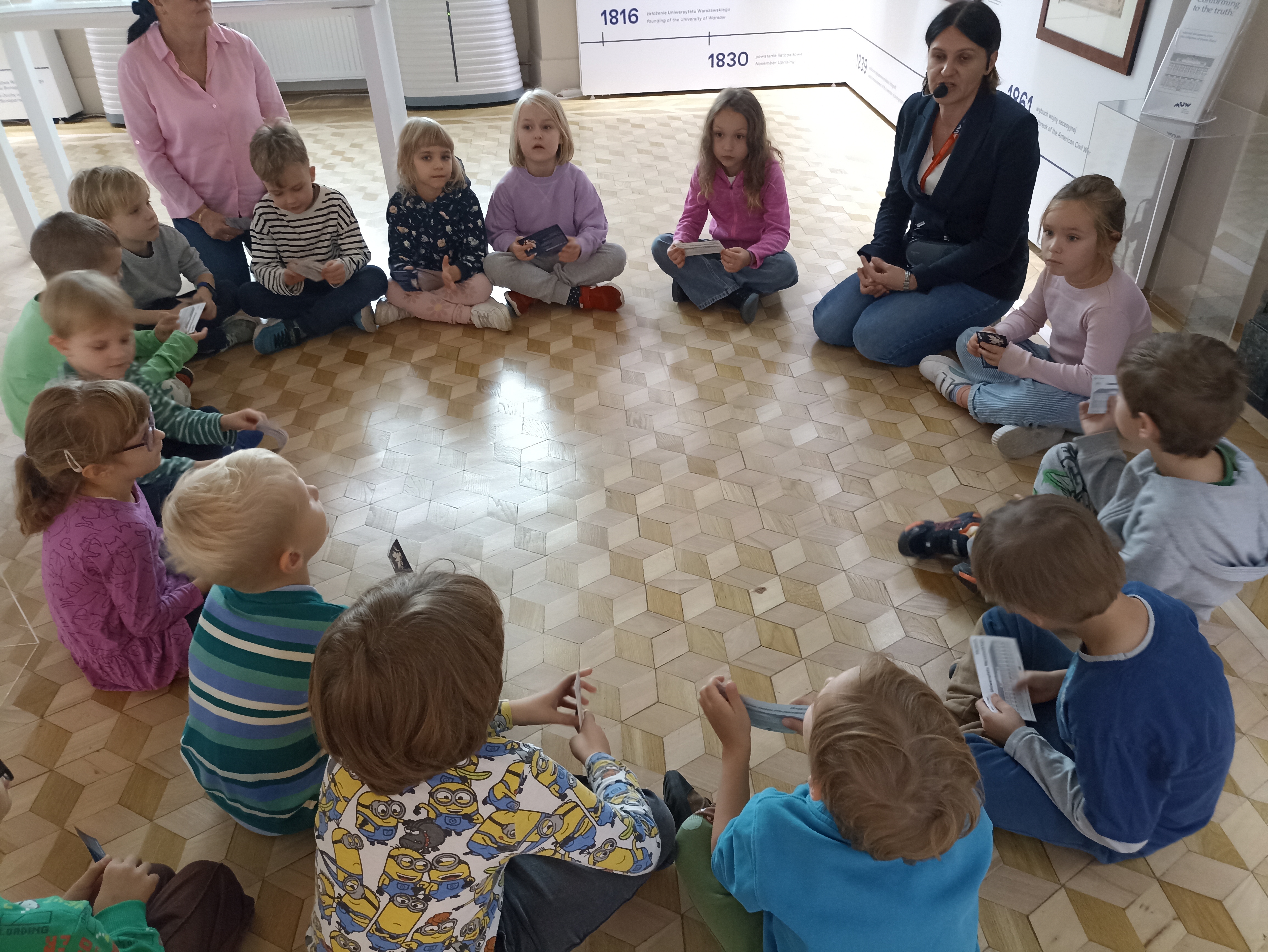 Najstarsza grupa odwiedziła Muzeum Uniwersytetu Warszawskiego. Dzieci zwiedzały kampus, słuchały o początkach uniwersytetu, uważnie obserwowały teraźniejszość
