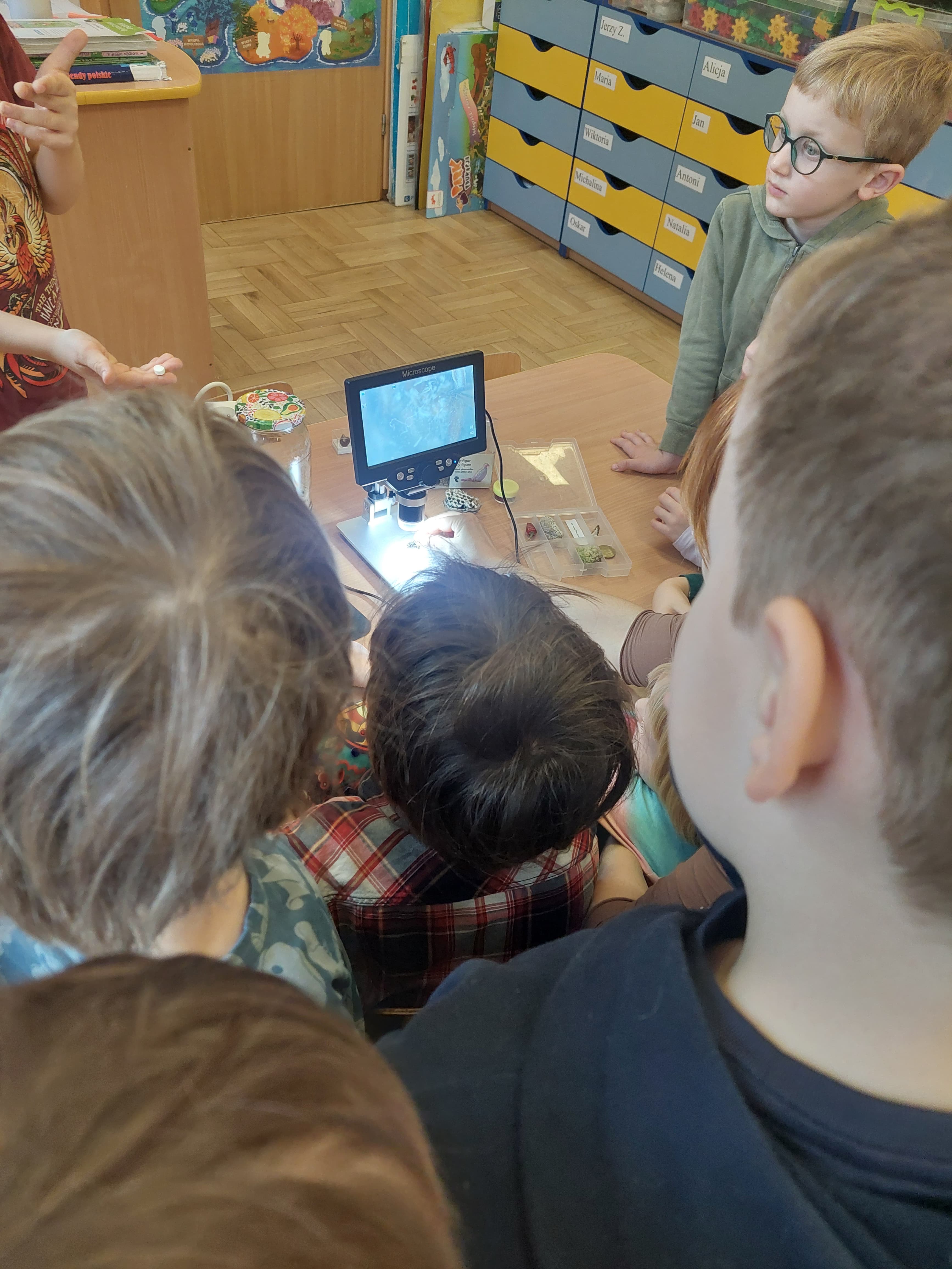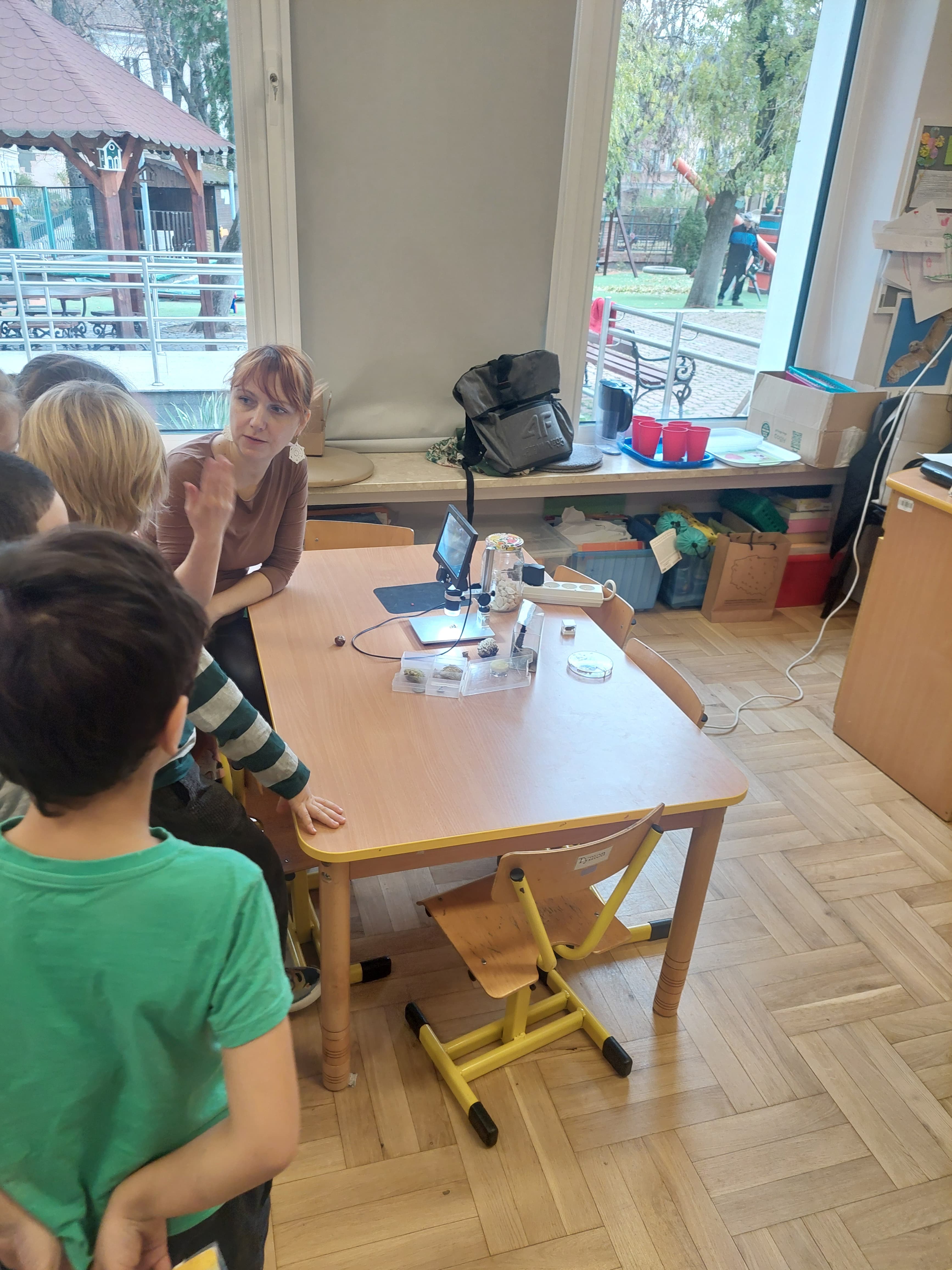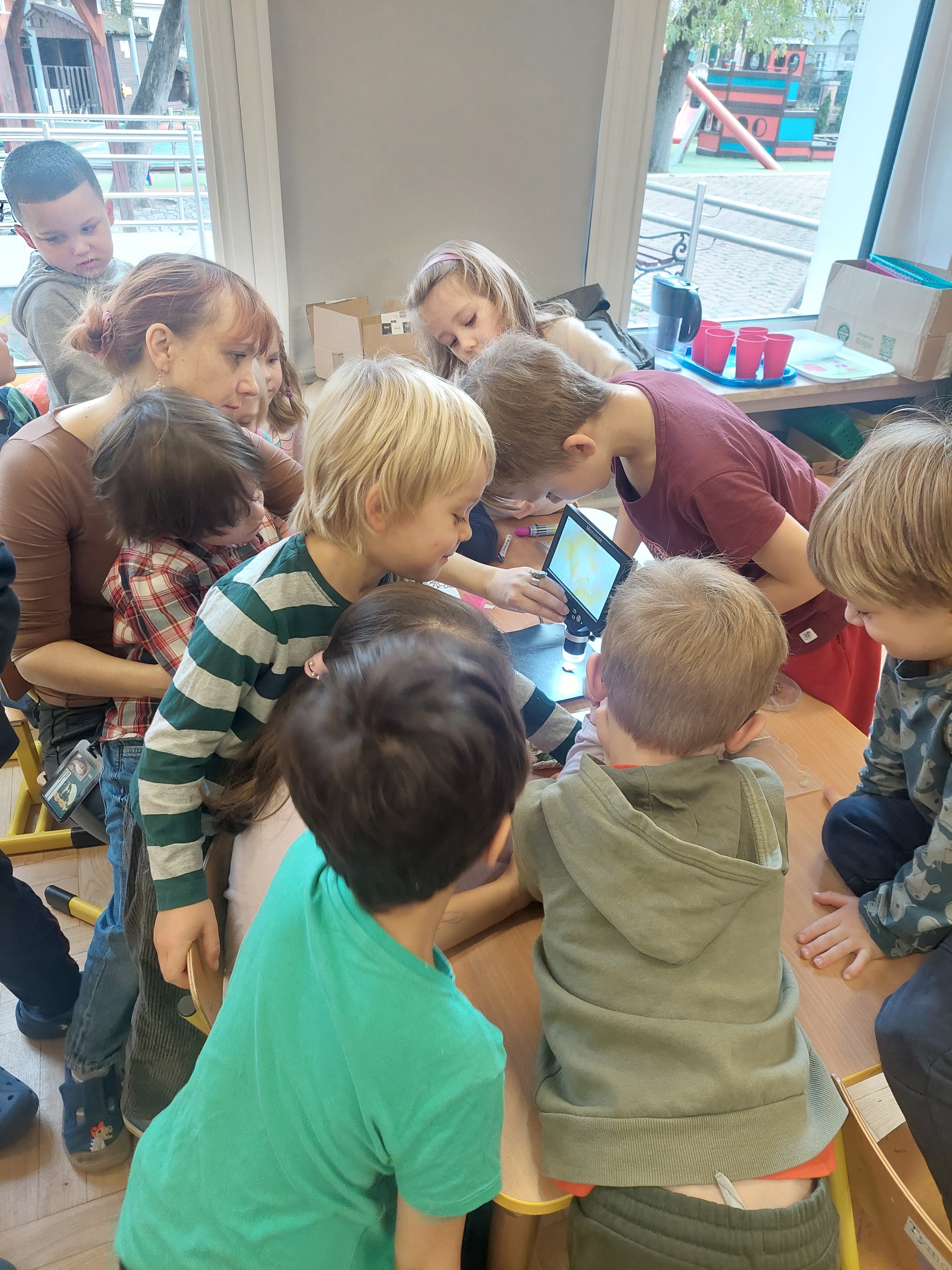 Dzieci z grupy Kropelki wzięły udział w warsztatach naukowych "Świat widziany pod mikroskopem", które zostały przeprowadzone przez Mamę Łucji.