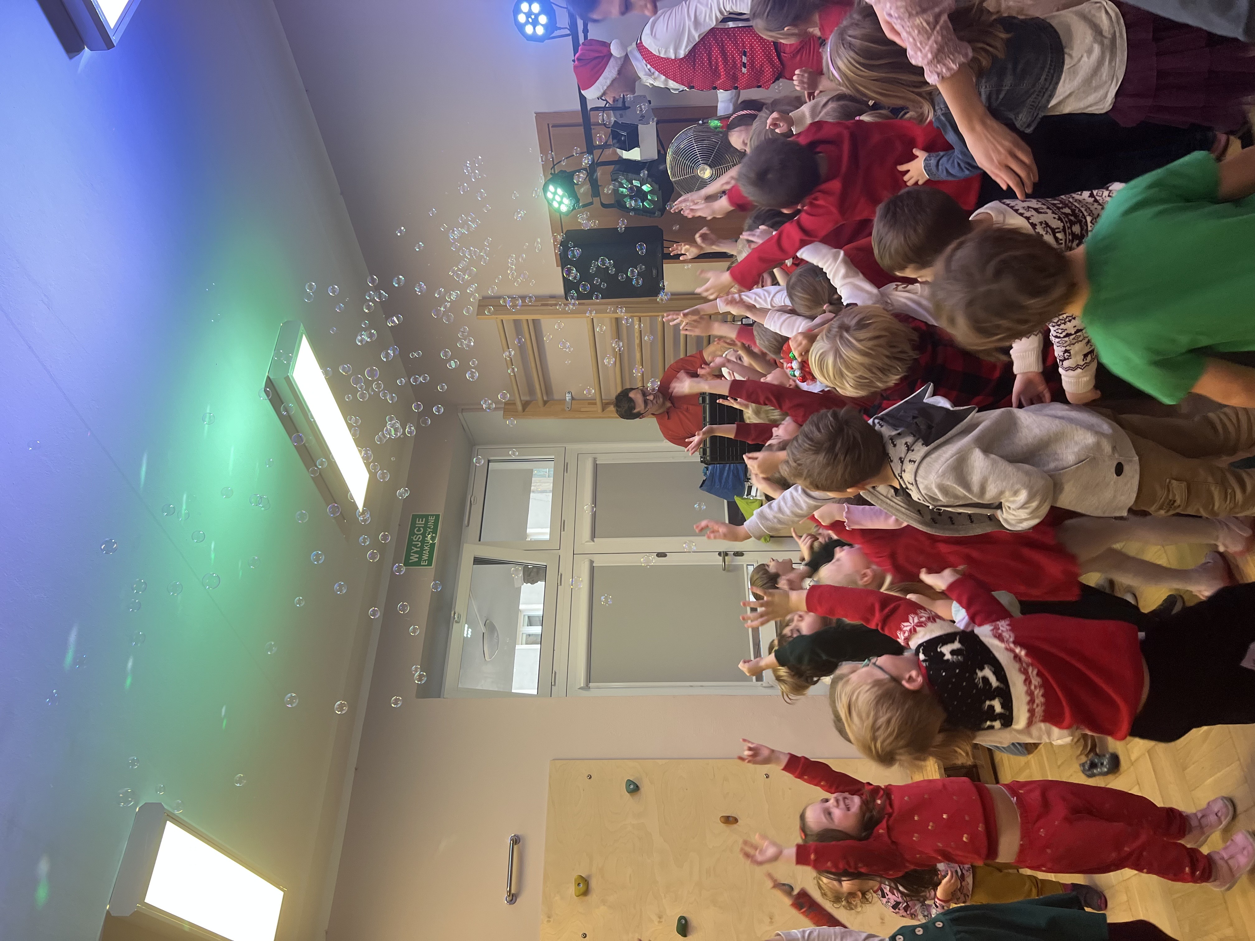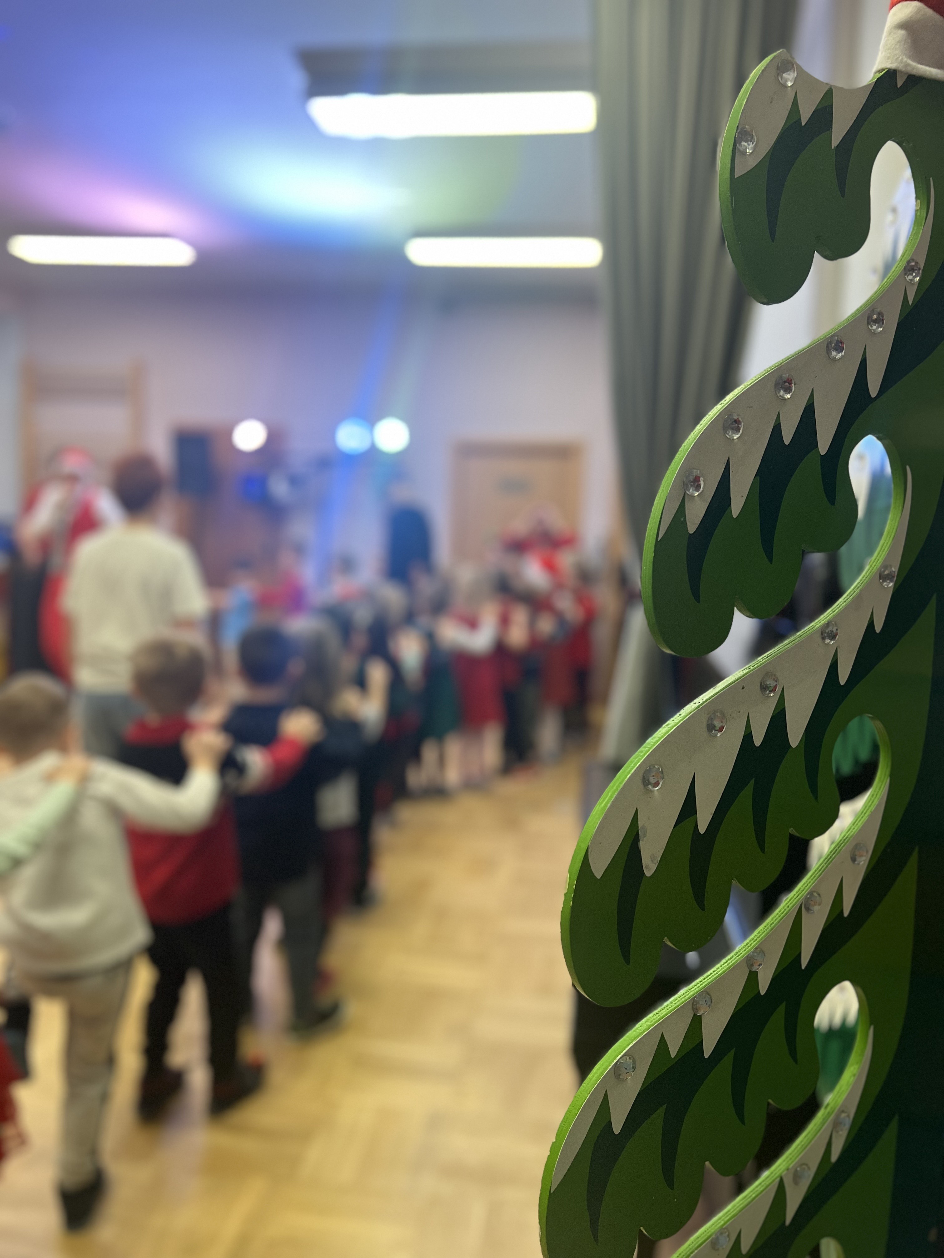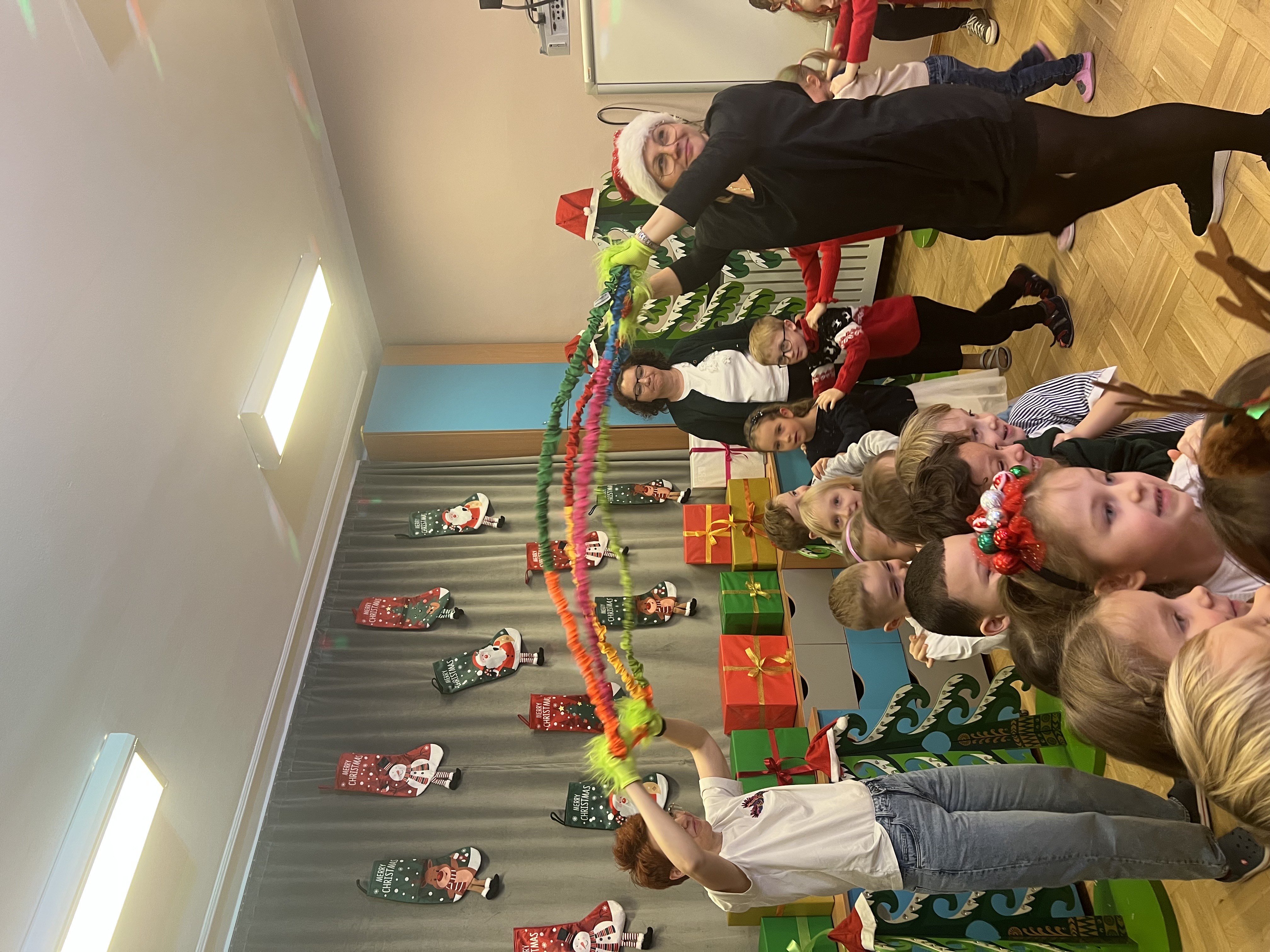 Dzieci przyszły ubrane w swoje świąteczne stroje i wzięły udział w różnych zabawach, które wymyślał pomocnik Mikołaja.